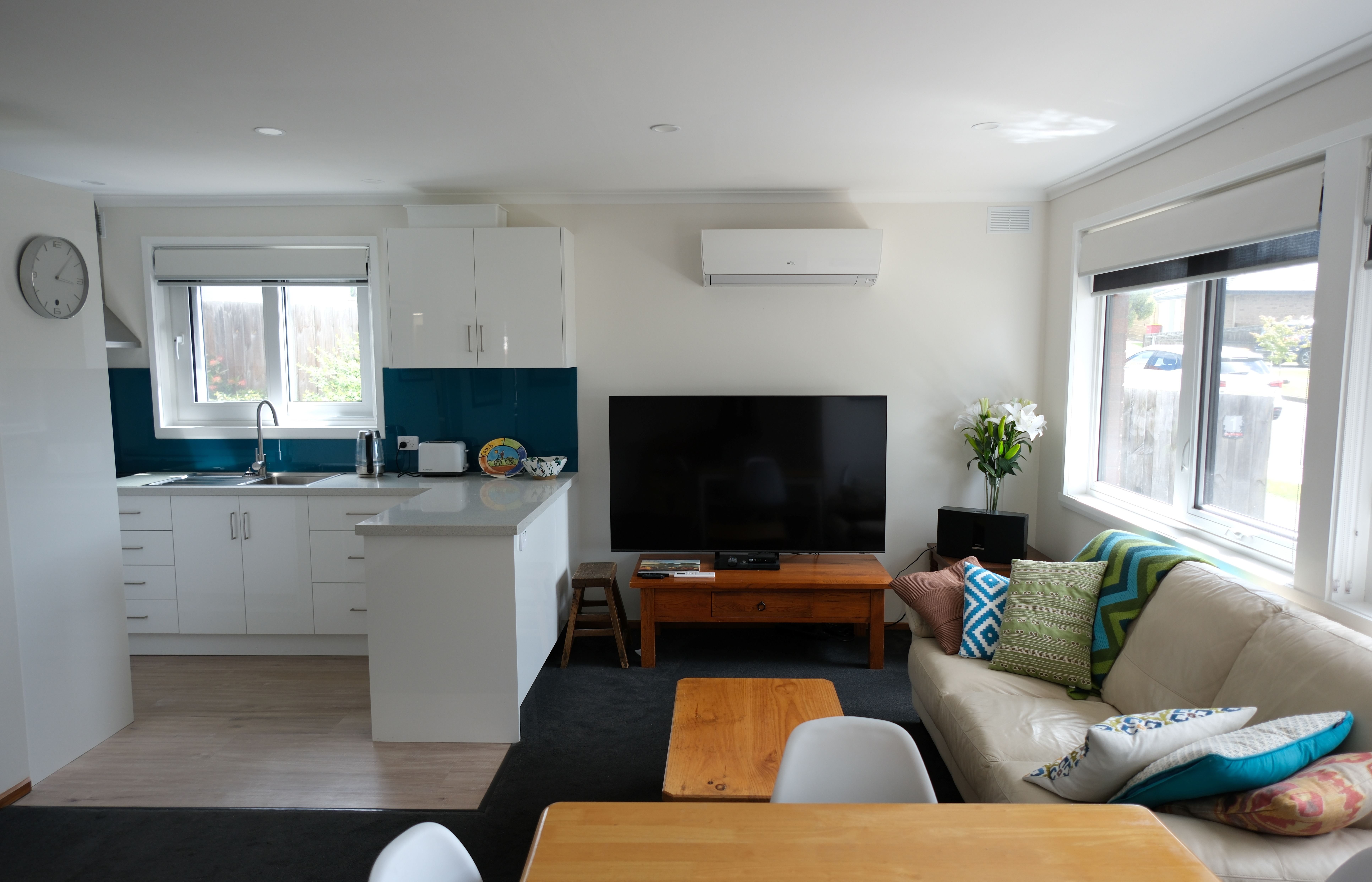 Featuring two well-sized bedrooms, a bright open plan living space and a new kitchen and laundry with updated Double-glazed windows and no maintenance. The bathroom offers a shower-over-bath, with a separate toilet and separate laundry for convenience.