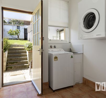 On trend bathroom sits alongside a separate toilet and a stylish laundry with direct outdoor access.